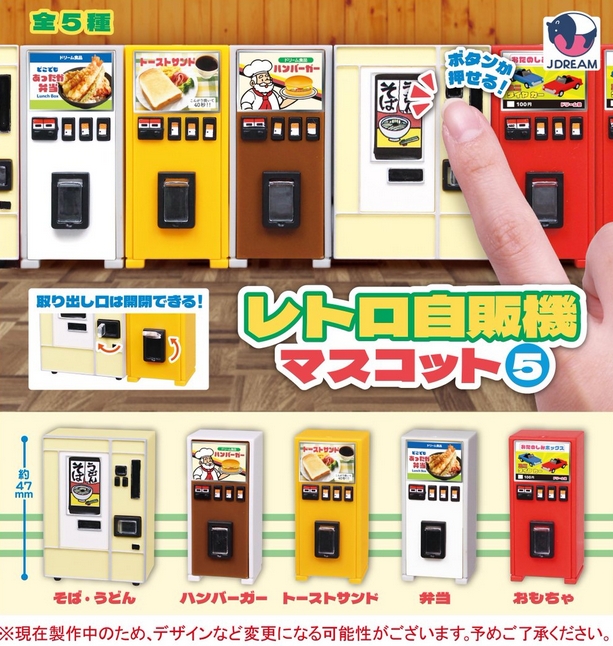 『レトロ自販機マスコット5』4月発売予定。ボタンが押せる!