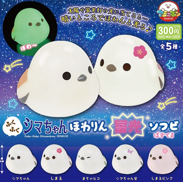 『ふくふくシマちゃん ほわりん蓄光ソフビ ぱすてる』4月発売予定。太陽や蛍光灯の光に当てると…暗いところでほわんと光る♪