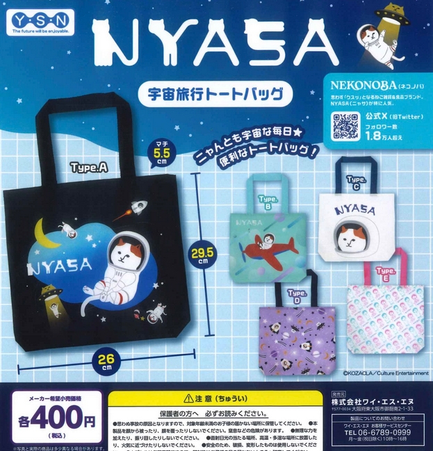 『NYASA 宇宙旅行トートバッグ』発売! Twitter Facebook はてブ Pocket LINE コピー 2026.02.17 『NYASA 宇宙旅行トートバッグ』 ◆ラインナップ <1>Type.A <2>Type.B <3>Type.C <4>Type.D <5>Type.E ◆メーカー:Peanuts Club ◆2026年2月発売 ◆400円カプセル 購入はこちら(楽天)