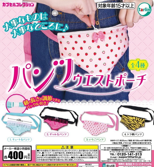 『パンツウエストポーチ』発売。大事なものは大事なところに♪ Twitter Facebook はてブ Pocket LINE コピー 2026.02.19 『パンツウエストポーチ』 ◆ラインナップ <1>キュートなパンツ <2>ギャルなパンツ <3>いちごパンツ <4>トラ柄パンツ ◆メーカー:ターリン・インターナショナル ◆2026年2月発売 ◆400円カプセル 購入はこちら(楽天)