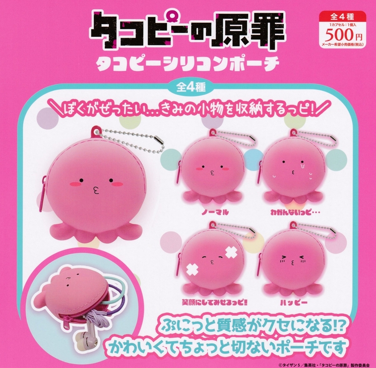 『タコピーの原罪 タコピーシリコンポーチ』発売!ぼくがぜったい…きみの小物を収納するっピ! Twitter Facebook はてブ Pocket LINE コピー 2026.02.21 『タコピーの原罪 タコピーシリコンポーチ』 ◆ラインナップ <1>ノーマル <2>わかんないっピ・・・ <3>笑顔にしてみせるっピ! <4>ハッピー ◆メーカー:リアンキューラボ ◆2026年2月発売 ◆500円カプセル 購入はこちら(楽天)