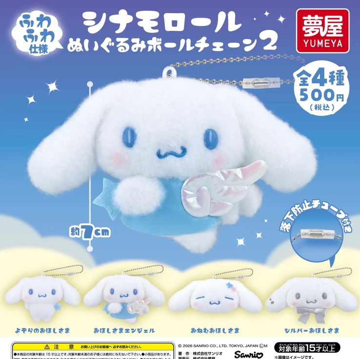 スポンサーリンク スポンサーリンク 『サンリオ シナモロールぬいぐるみボールチェーン2』発売! Twitter Facebook はてブ Pocket LINE コピー 2026.02.27 『サンリオ シナモロールぬいぐるみボールチェーン2』 ◆ラインナップ <1>よぞらのおほしさま <2>おほしさまエンジェル <3>おねむおほしさま <4>シルバーおほしさま ◆メーカー:ご当地本舗夢屋 ◆2026年2月発売 ◆500円カプセル 購入はこちら(楽天)