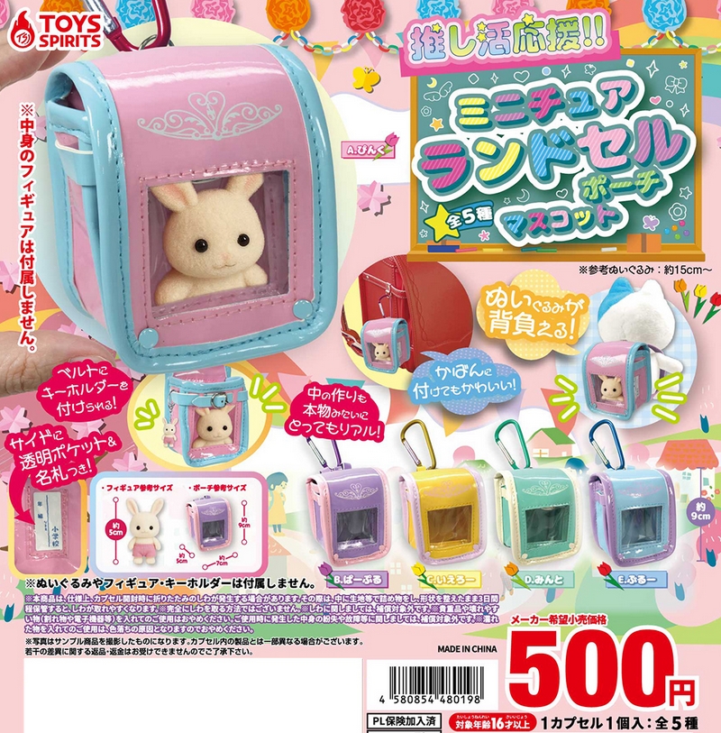 スポンサーリンク スポンサーリンク 『推し活応援!ミニチュアランドセルポーチマスコット』発売。ぬいぐるみが背負える! Twitter Facebook はてブ Pocket LINE コピー 2026.02.27 『推し活応援!ミニチュアランドセルポーチマスコット』 ◆ラインナップ <1>ぴんく <2>ぱーぷる <3>いえろー <4>みんと <5>ぶるー ◆メーカー:トイズスピリッツ ◆2026年2月発売 ◆500円カプセル 購入はこちら(楽天)