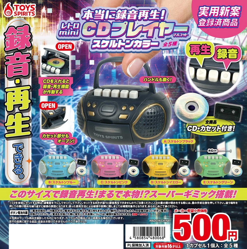 『本当に録音再生!レトロminiCDプレイヤーマスコット スケルトンカラー』