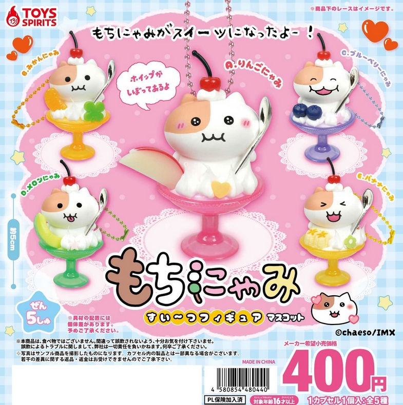 スポンサーリンク スポンサーリンク 『もちにゃみ すい~つフィギュアマスコット』発売。 Twitter Facebook はてブ Pocket LINE コピー 2026.03.19 『もちにゃみ すい~つフィギュアマスコット』 ◆ラインナップ <1>りんごにゃみ <2>みかんにゃみ <3>ブルーベリーにゃみ <4>メロンにゃみ <5>バナナにゃみ ◆メーカー:トイズスピリッツ ◆2026年3月発売 ◆400円カプセル 購入はこちら(楽天)