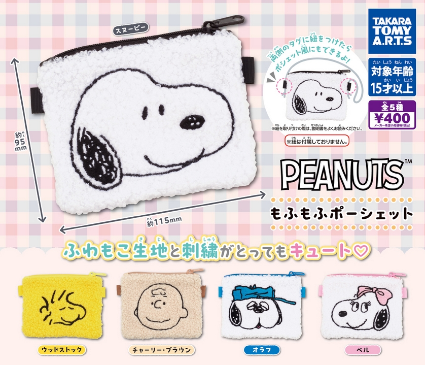 スポンサーリンク スポンサーリンク 『スヌーピー PEANUTS もふもふポーシェット』発売!ふわもこ生地と刺繍がとってもキュート♡ Twitter Facebook はてブ Pocket LINE コピー 2026.03.24 『スヌーピー PEANUTS もふもふポーシェット』 ◆ラインナップ <1>スヌーピー <2>ウッドストック <3>チャーリー・ブラウン <4>オラフ <5>ベル ◆メーカー:タカラトミーアーツ ◆2026年3月発売 ◆400円カプセル 購入はこちら(楽天)